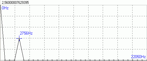 Then resolution is 44100 / 64 = 689 Hz, and the sine wave frequency